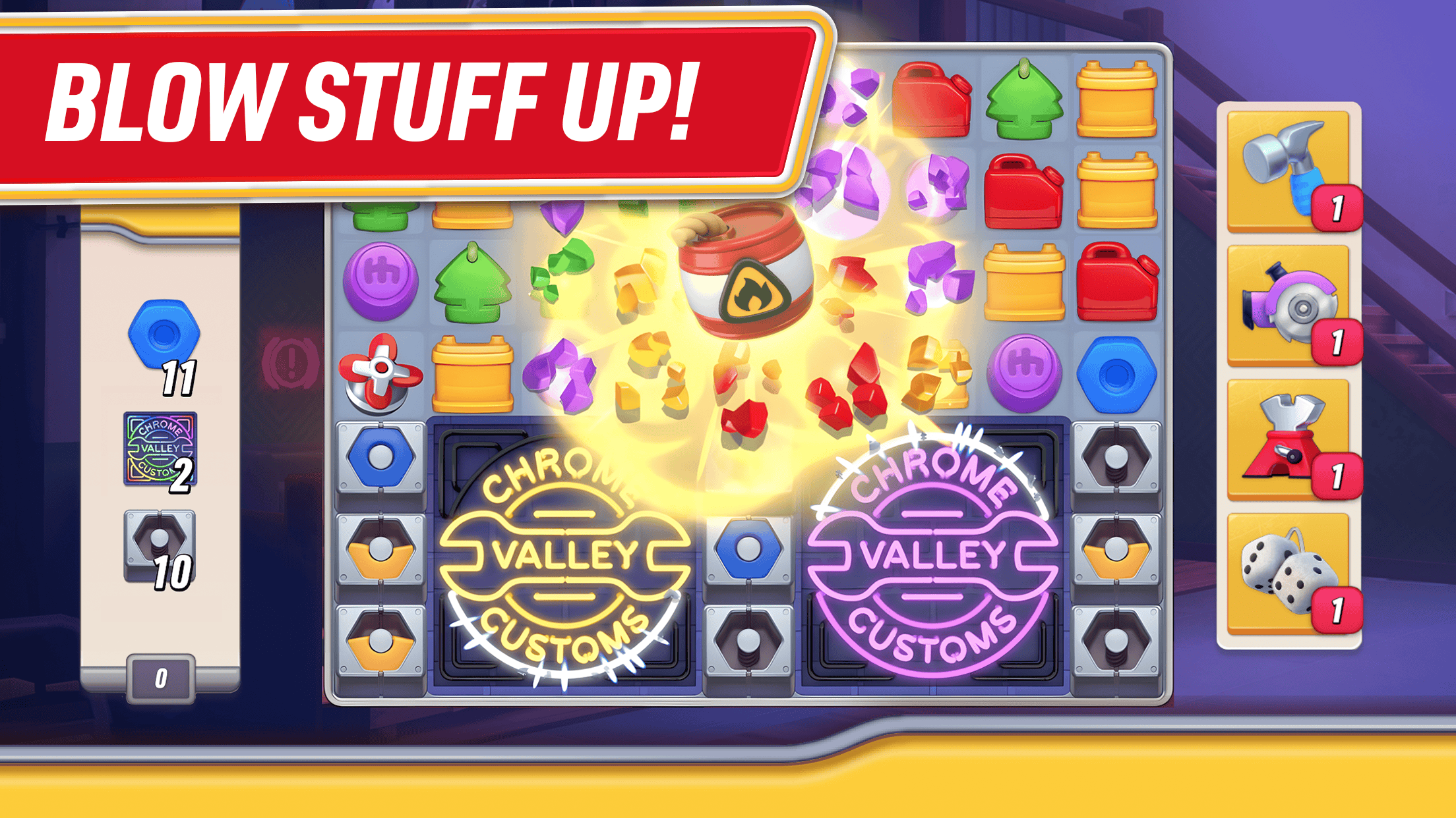Restore classic American cars to their former glory, or turn them into outrageous street machines with a wide range of customization options! Meet the car’s owners and help them achieve the car of their dreams. Take charge of the garage and make decisions like a mechanic: repair, restore, paint, upholster, and finish the cars in the way you like best! Chrome Valley Customs is all about taking a classic and giving it a massive performance upgrade, and that’s exactly what we’ve done to puzzle games. With explosive power-ups, challenging levels, and a dramatic story, Chrome Valley Customs will give you the ride of your life!